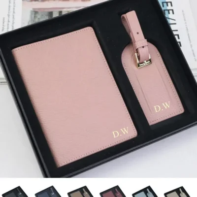 Genuine Leather Passport Holder & Luggage Tag Gift Set, Passport Cover Suitcase Tag Label Traveler’s Gift Engraved Name Custom ID Tag
