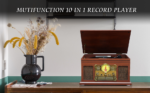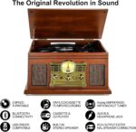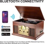 • [10-in-1 Mutifunctional Record Player]– With vintage mahogany wooden look & modern features, this turntable not only plays your Vinyls, but also has a CD & cassette player, FM/AM radio, Bluetooth, and Aux & headphone jack.*Note:CD is a player, it does not support recording function, but you can record CD to USB, SD card.