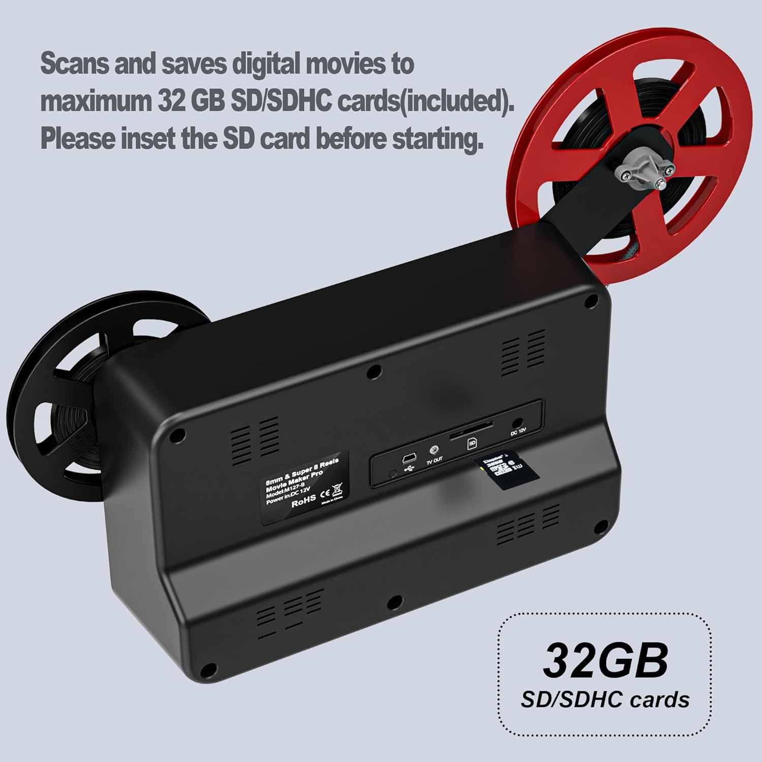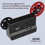 • Frame-by-Frame 1080P Digitisation: Capture every frame with precision using advanced frame-by-frame scanning technology, delivering sharp and stable results with reduced flicker. This 8mm and Super 8 film scanner converts classic film reels into 1080P MJPEG-4 (MP4) digital video at 20 fps, making it easy to view, edit, and share your memories. Save your digitised films directly to the included 32GB SD card for convenient storage and playback.