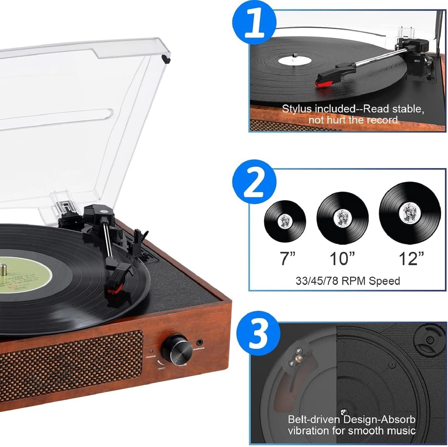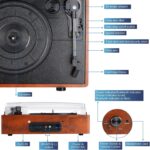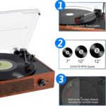 Bluetooth Record Player Belt-Driven 3-Speed Turntable, Vintage Vinyl Record Players
