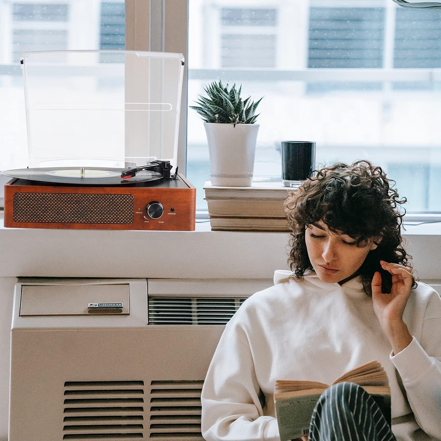 Built-in Stereo SpeakerThis Heroin record player is built-in stereo speaker, you can use it to play your favorite music. The high-sensitivity stylus can read the record information accurately.