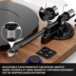 - [Adjustable Counterweight & Solid Iron Platter] – Adjustable counterweight ensures smooth movement of the Audio-Technica pen to maintain clarity about musical tips and avoid distortion. The precision-machined solid iron turntable produces an even inertia mass for perfect stability and rotation. Takes high-fidelity playback to the next level.