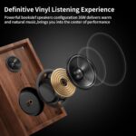 - [Turntable with 36W HiFi Speaker] – Built-in switchable phono line and pre-amplifier allow to connect with the set of included speakers or your own externally-powered speakers via the dual RCA output cables. RCA output Only Can Connect to Active Speakers.The grounding cable also allows you to connect the grounding cable in your home to the grounding cable of this product, which can effectively reduce sound interference.