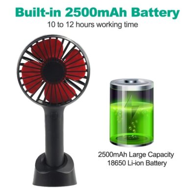 Mini Portable Handheld Fan, USB Rechargeable Desk Fan With 2500mAh Battery 10 Hours Working time & 4 Adjustable Speeds Hand Fan (Black)