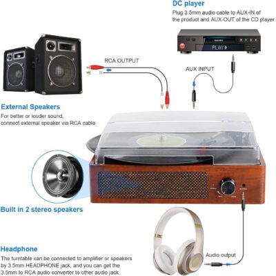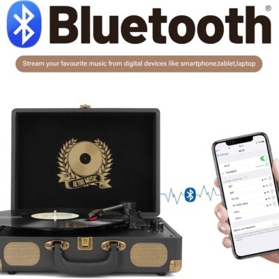 Bluetooth Record Player Belt-Driven 3-Speed Turntable, Vintage Vinyl Record Players