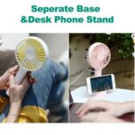 - REMOVABLE BASEÂ – With the removable base, You can use it in your office or carry it around to solve the hot stuff on the road. Meet your cool needs throughout the day. Meanwhile, the fan base can also be used as a mobile phone holder for video watching.